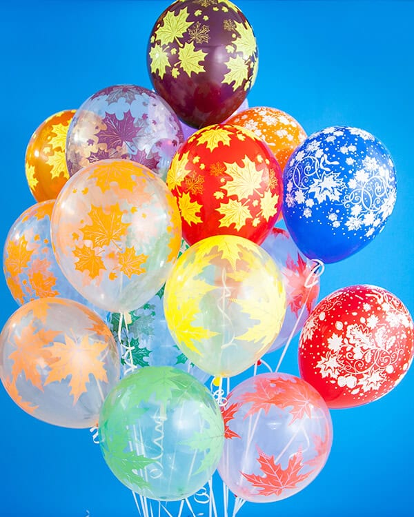 Воздушные шары из натурального латекса с шелкографическим рисунком тематических дизайнов станут идеальным украшением праздничного торжества, а букет из воздушных шаров поднимет настроение в любое время года.